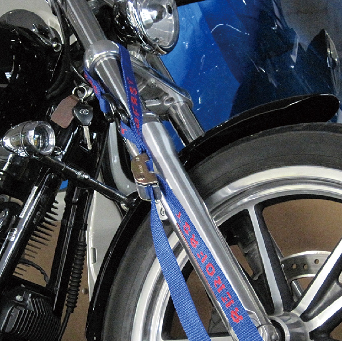 オーストラリア・ニュージーランドで最も売れているモーターサイクル用タイダウン(荷締めベルト)です。ハンドルバーの損傷を防ぐソフトループシステムを採用。25mmの高耐久ウェビングを使用し、モーターサイクル専用に設計されたカムバックルを備えています。