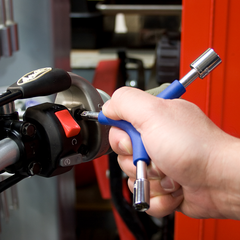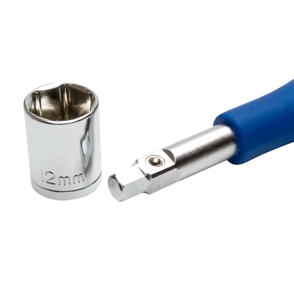 6つのツールが1つに!8mm, 10mm, 12mmソケット+4mm, 5mm, 6mm六角レンチをY字型ハンドルでまとめた万能ツール。クッション付きグリップで使いやすさ抜群!コンパクトでツールパックにスッポリ。タフなクロームバナジウム鋼製!