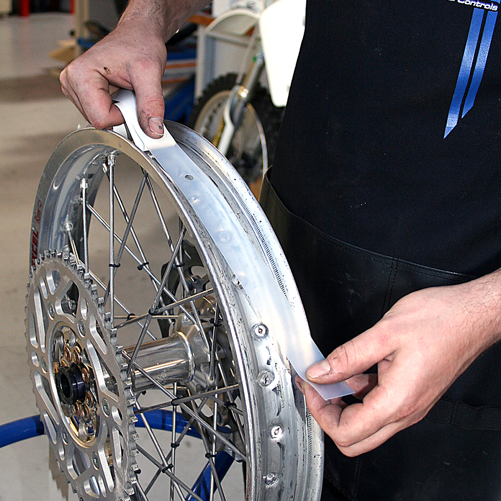 ◆ 粘着性のテープで貼付けるのでゴム製のリムバンドよりも非常にずれにくくなっています。
