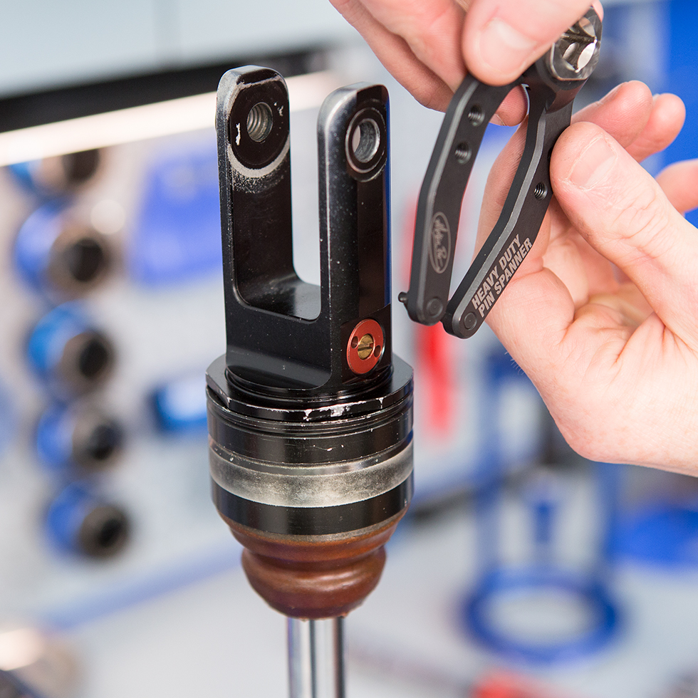 ◆サスペンションリザーバータンク、スクリュータイプのシールヘッド、フォークキャップ、ベアリングリテーナーなどの脱着用にデザインされた特殊工具です。