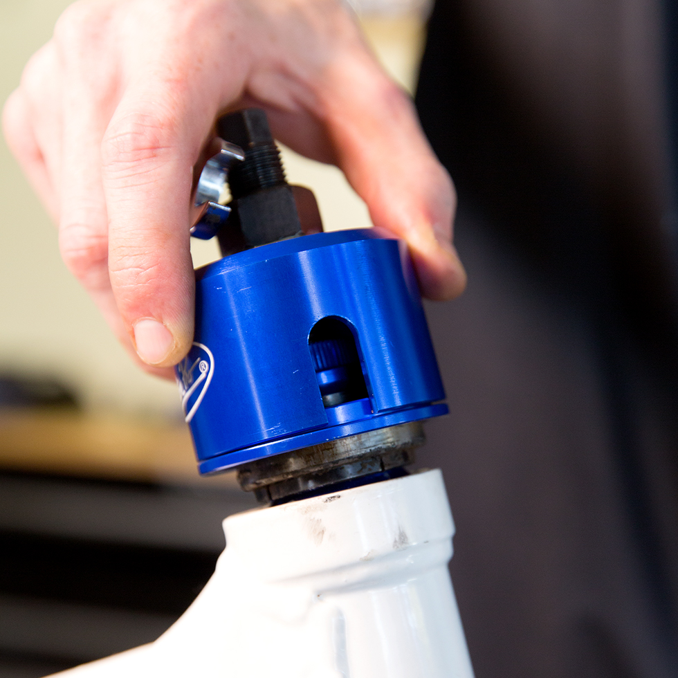 ◆ ステアリングヘッドからベアリングレースを迅速かつ正確に抜き取るツールです。