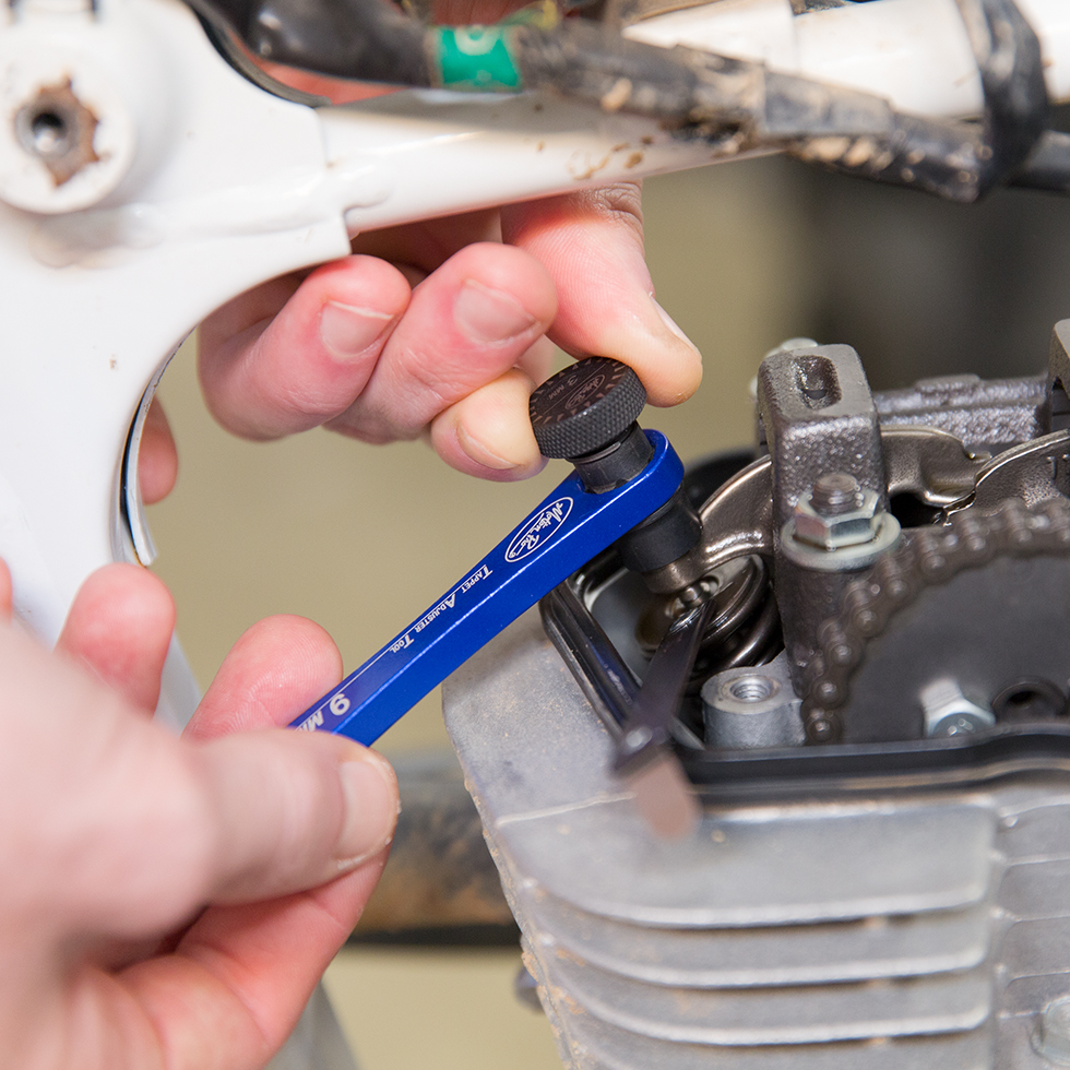 ◆ アルミ本体でロックナットを保持したまま鉄製アジャストドライバーでクリアランスを微調整できるツールです。