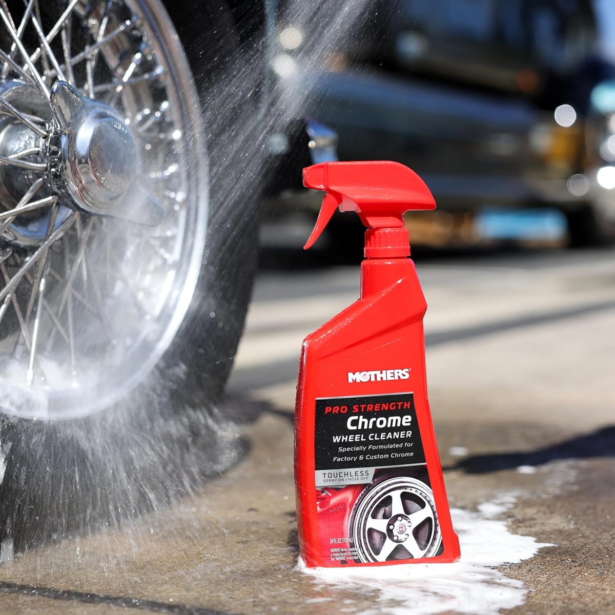 プロストレングス クロームホイールクリーナーは、クローム処理されたホイールやスポークホイール、ワイヤーハブキャップ、鍛造アルミホイールなどを素早く簡単に洗浄するための専用クリーナーです。