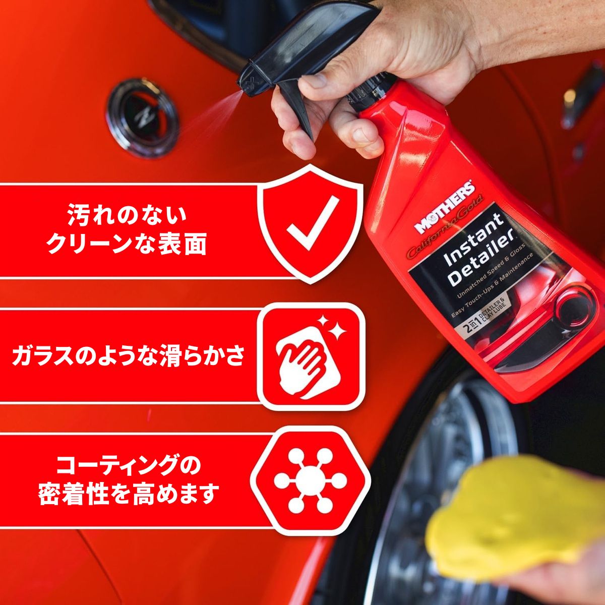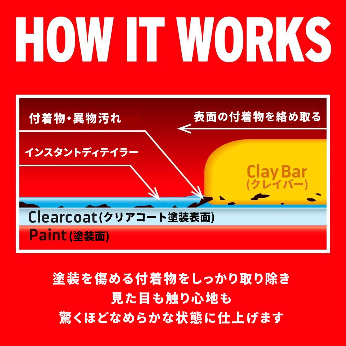 ワックスやコーティング前に施工することで本来の光沢・手触り・持続性が劇的に向上します。