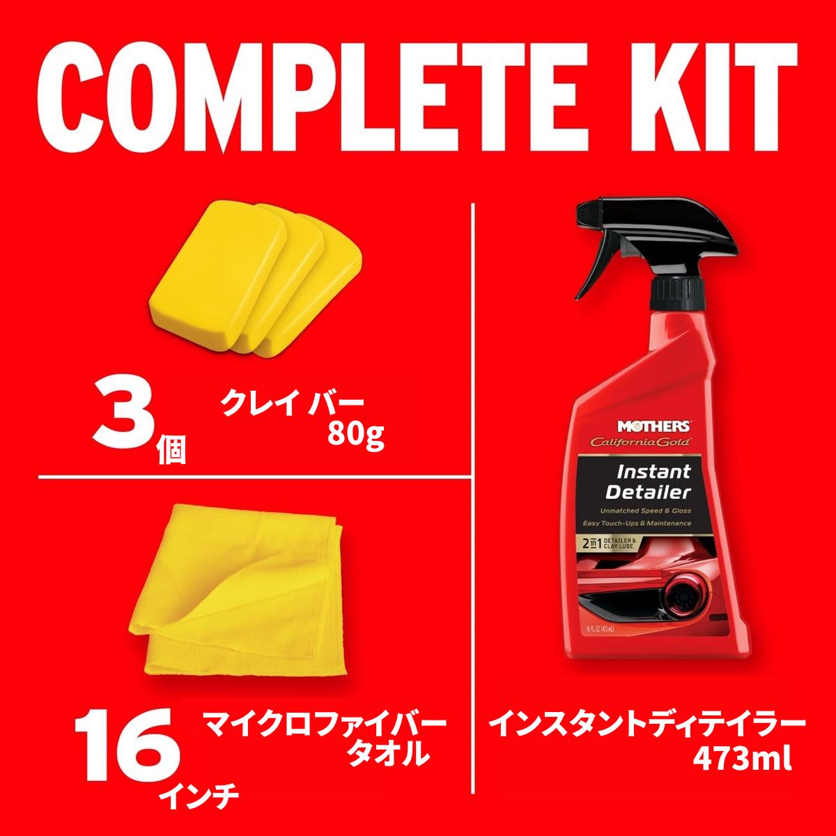 80gx2クレイバー 473ml インスタントディテイラー マイクロファイバータオル |