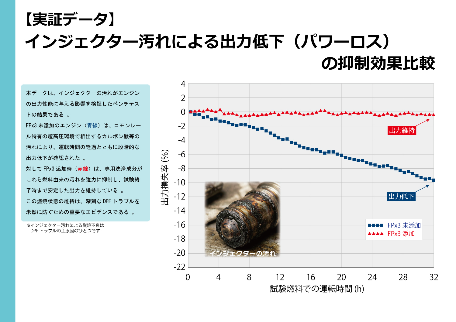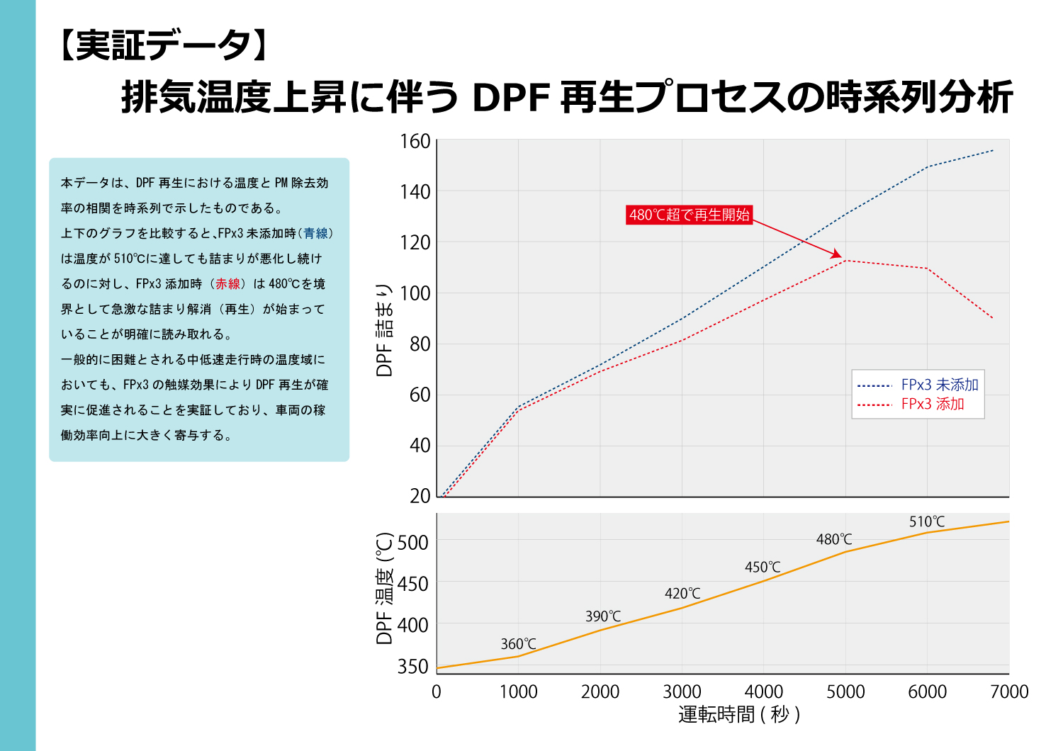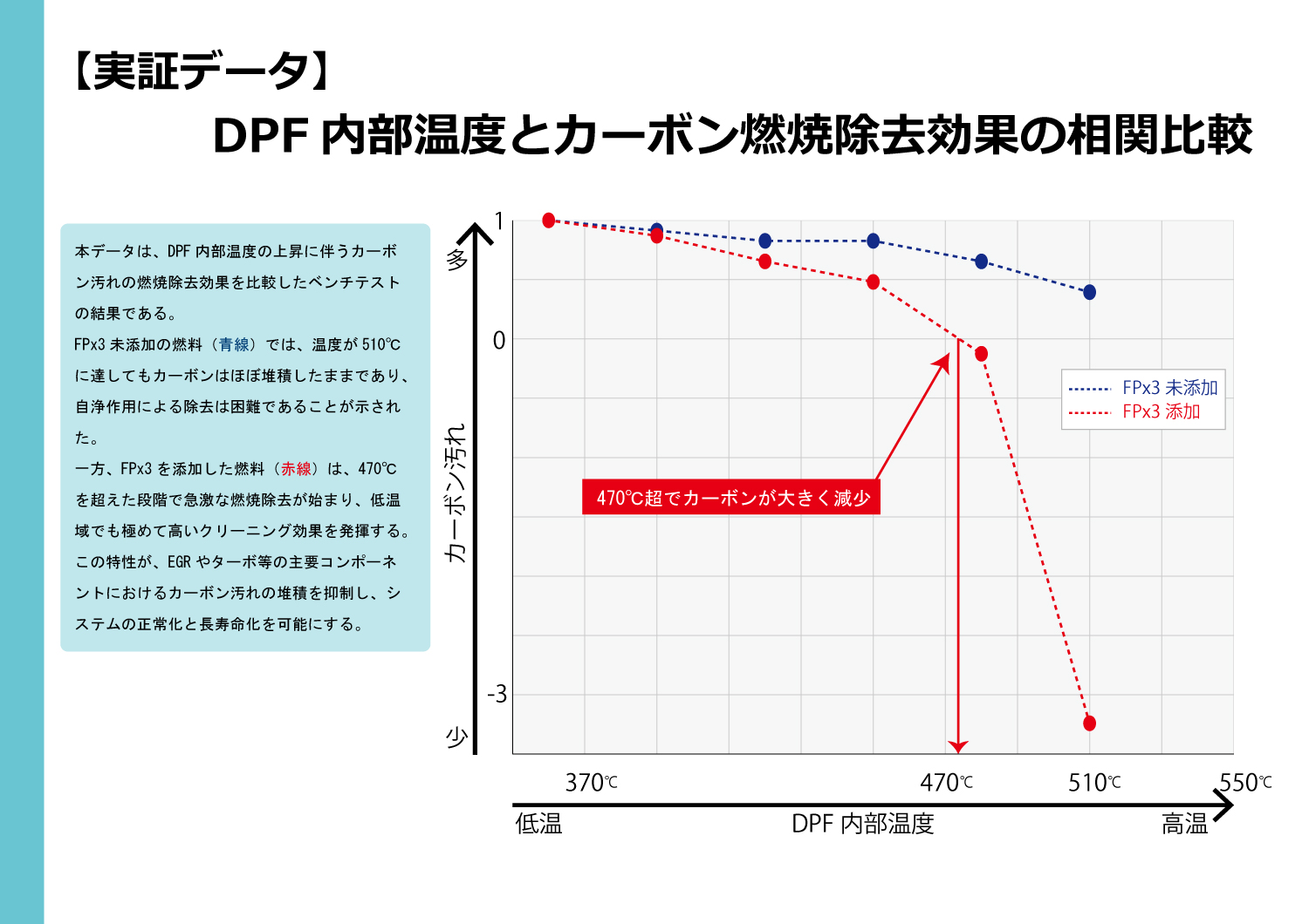 通常走行域(低温)から煤(スス)の燃焼を促進し、DPF(ディーゼル微粒子捕集フィルター)の詰まりを予防・解消!