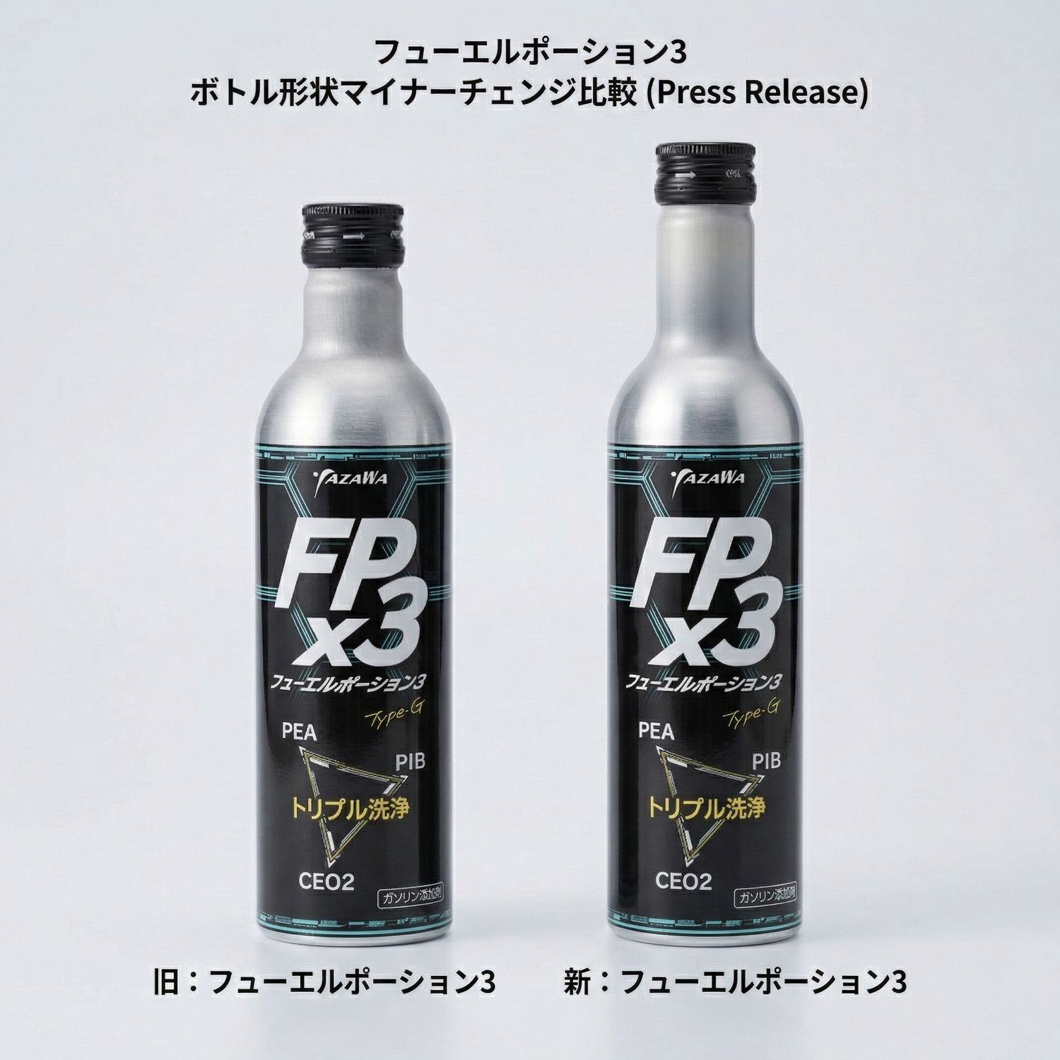 このたび、フューエルポーション3のボトル形状を見直し、従来品より首が長い新ボトルへ順次切り替えることとなりました。
